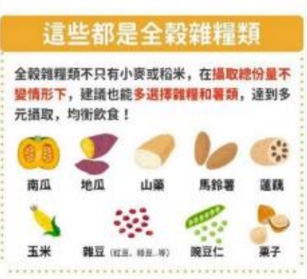 該少吃的是 :白飯、白麵包、白麵條、餅乾零食